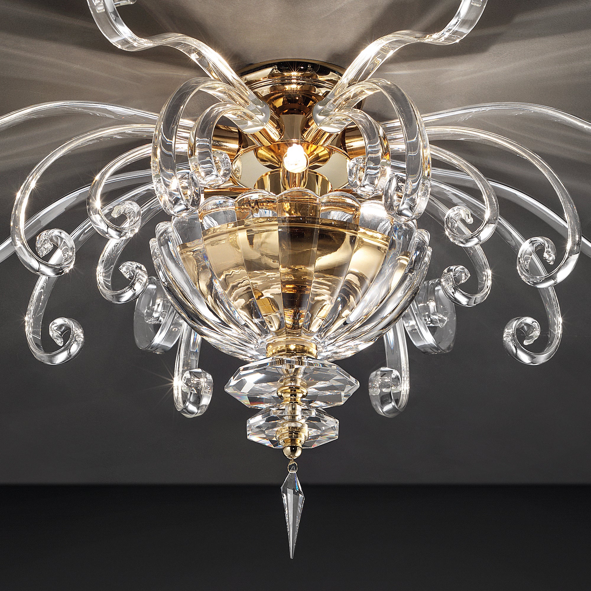 Classic Italian Designer Gold Plated Ceiling Light