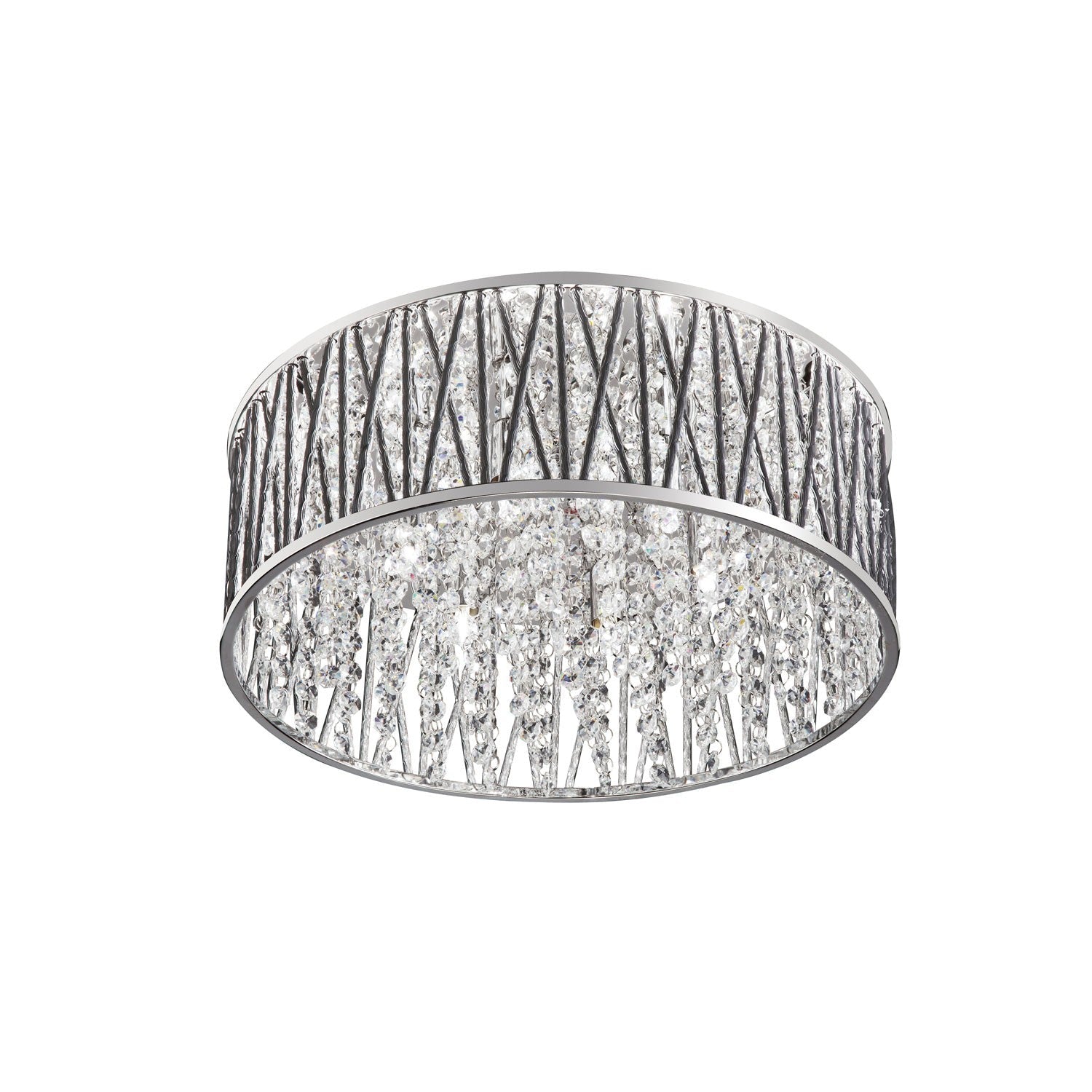 Schonbek Trilliane Strands Stainless Steel Four-Light Round Medium Flush Mount with Clear Heritage Crystal