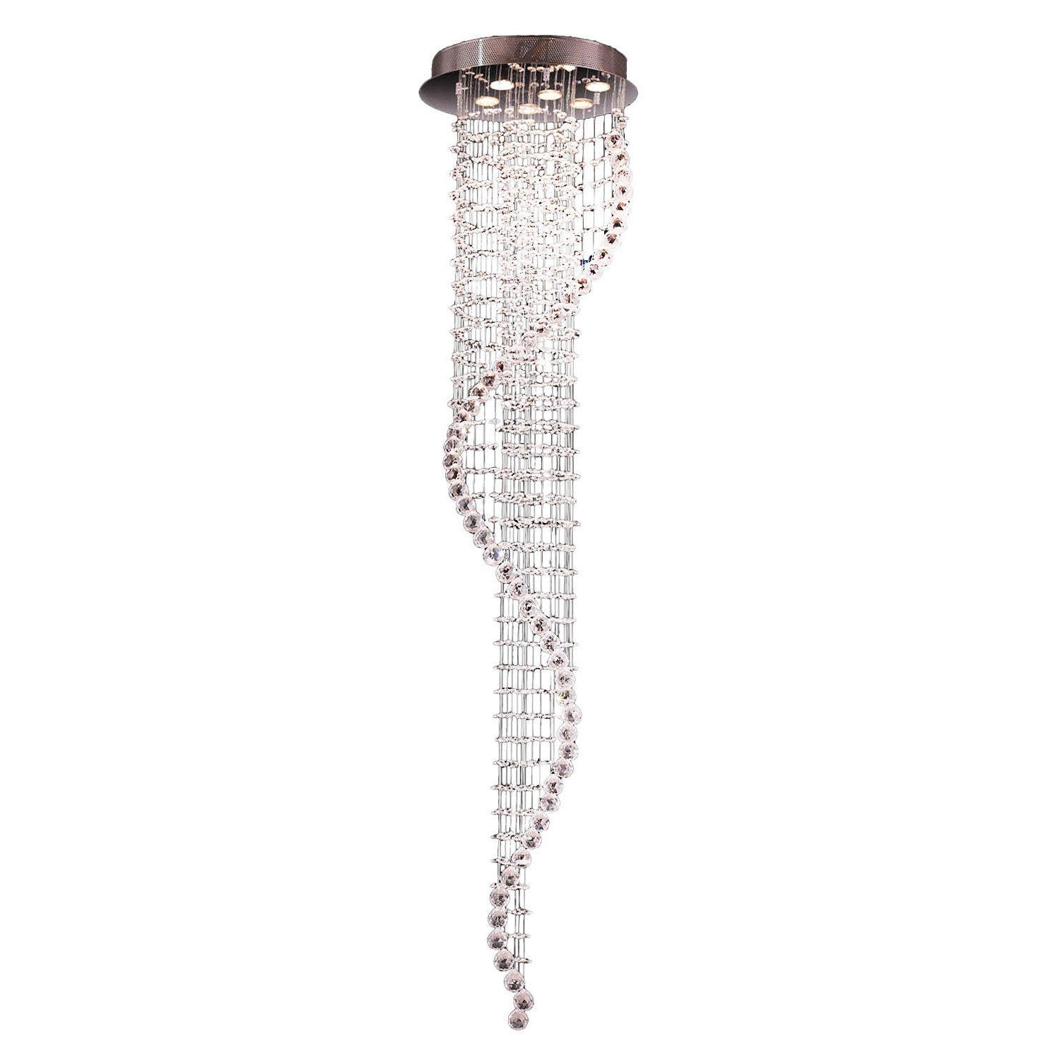 Schonbek Trilliane Strands Stainless Steel Six-Light Round Long Flush Mount with Clear Heritage Crystal