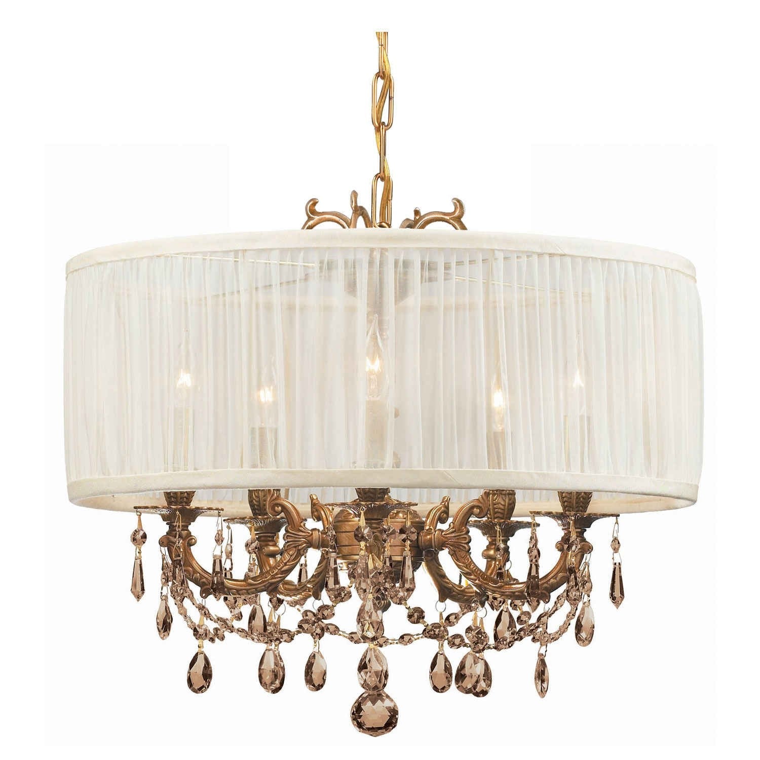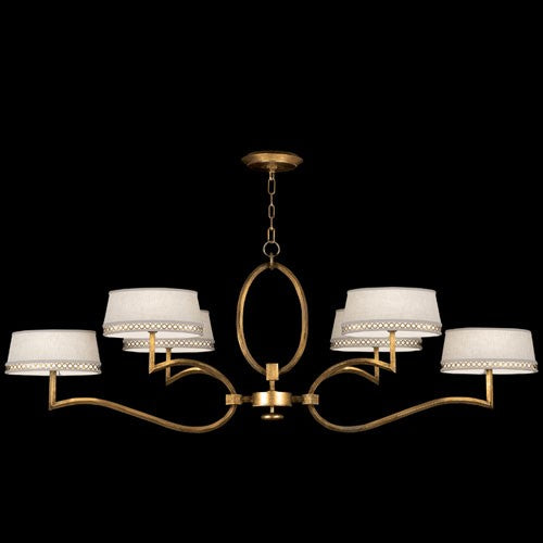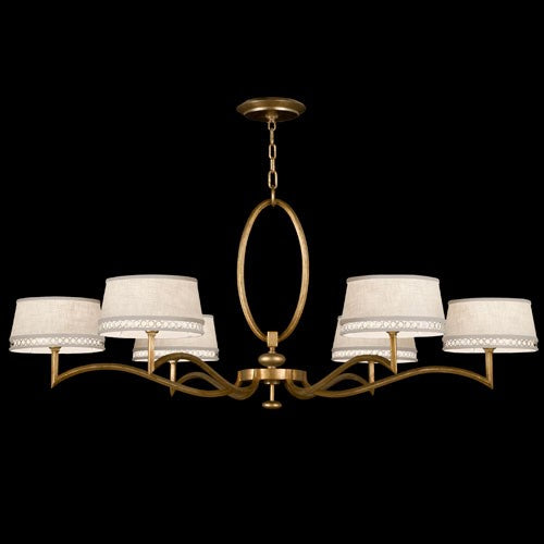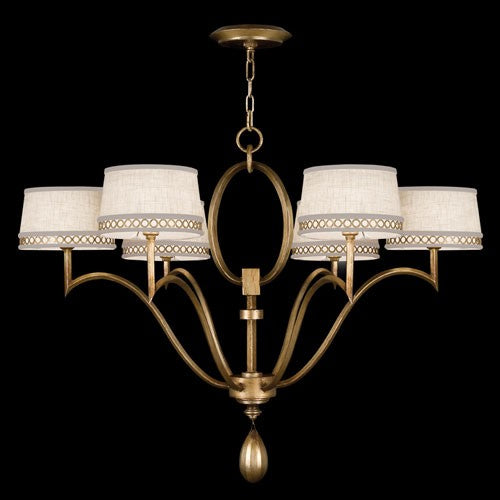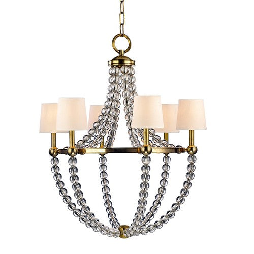 Aged Brass Six-Light Chandelier with Cream Shade