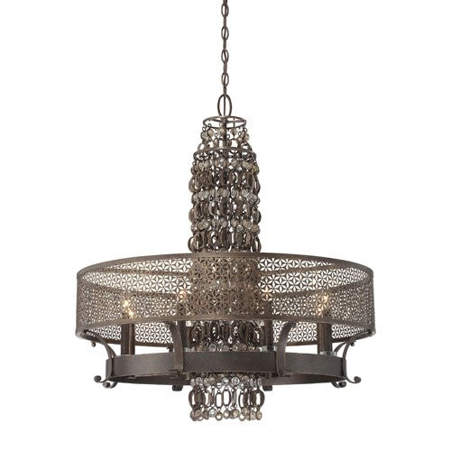 Ajourer French Bronze with Jeweled Accents Eight-Light Chandelier