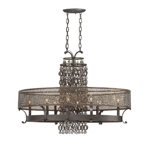 Ajourer French Bronze with Jeweled Accents Eight-Light Oval Chandelier