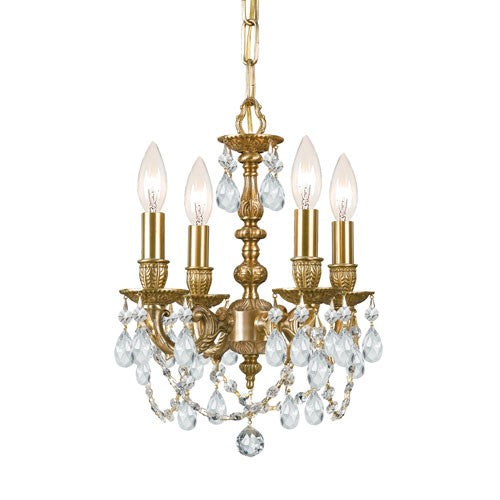 Aged Brass Clear Majestic Crystal Four-Light Chandelier