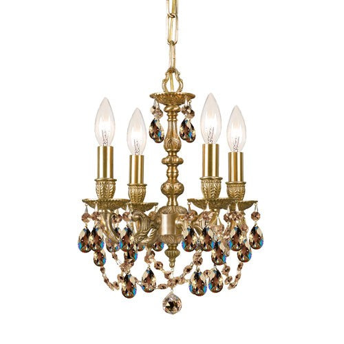 Aged Brass Golden Teak Crystal Four-Light Chandelier