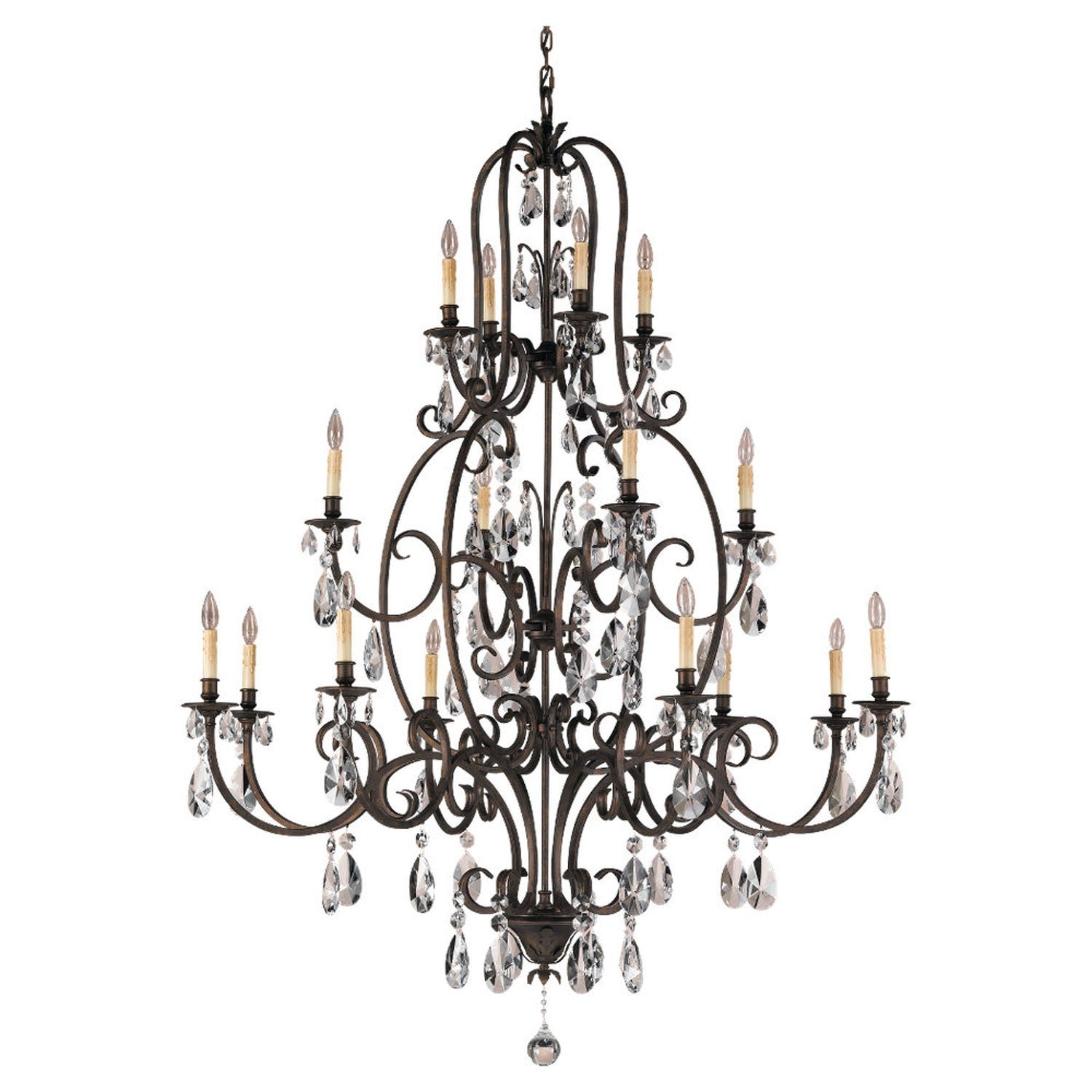 Aged Bronze Twelve-Light Chandelier