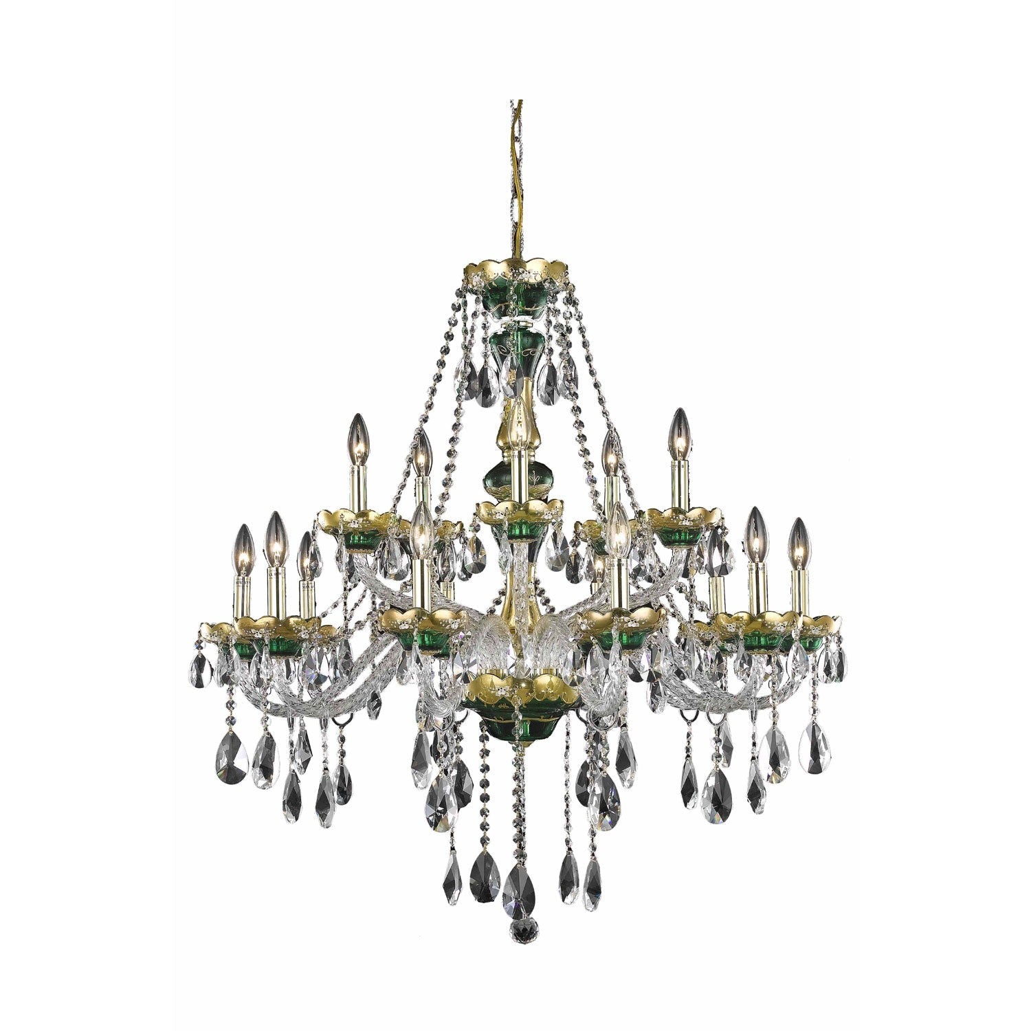 Alexandria Green Fifteen-Light Chandelier with Clear Royal Cut Crystals