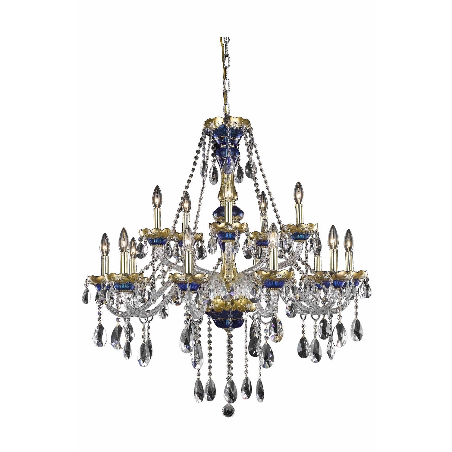 Alexandria Blue Fifteen-Light Chandelier with Clear Royal Cut Crystals
