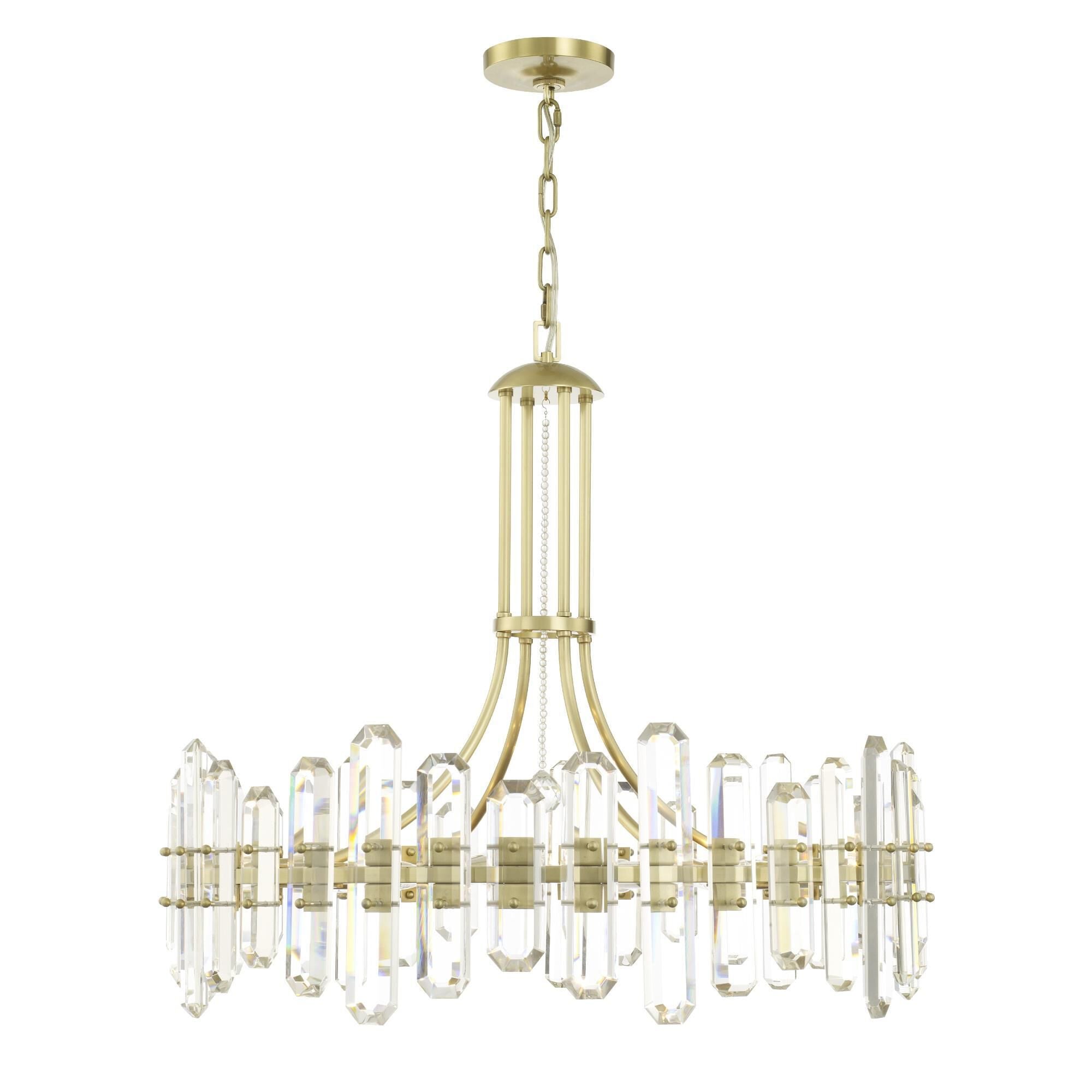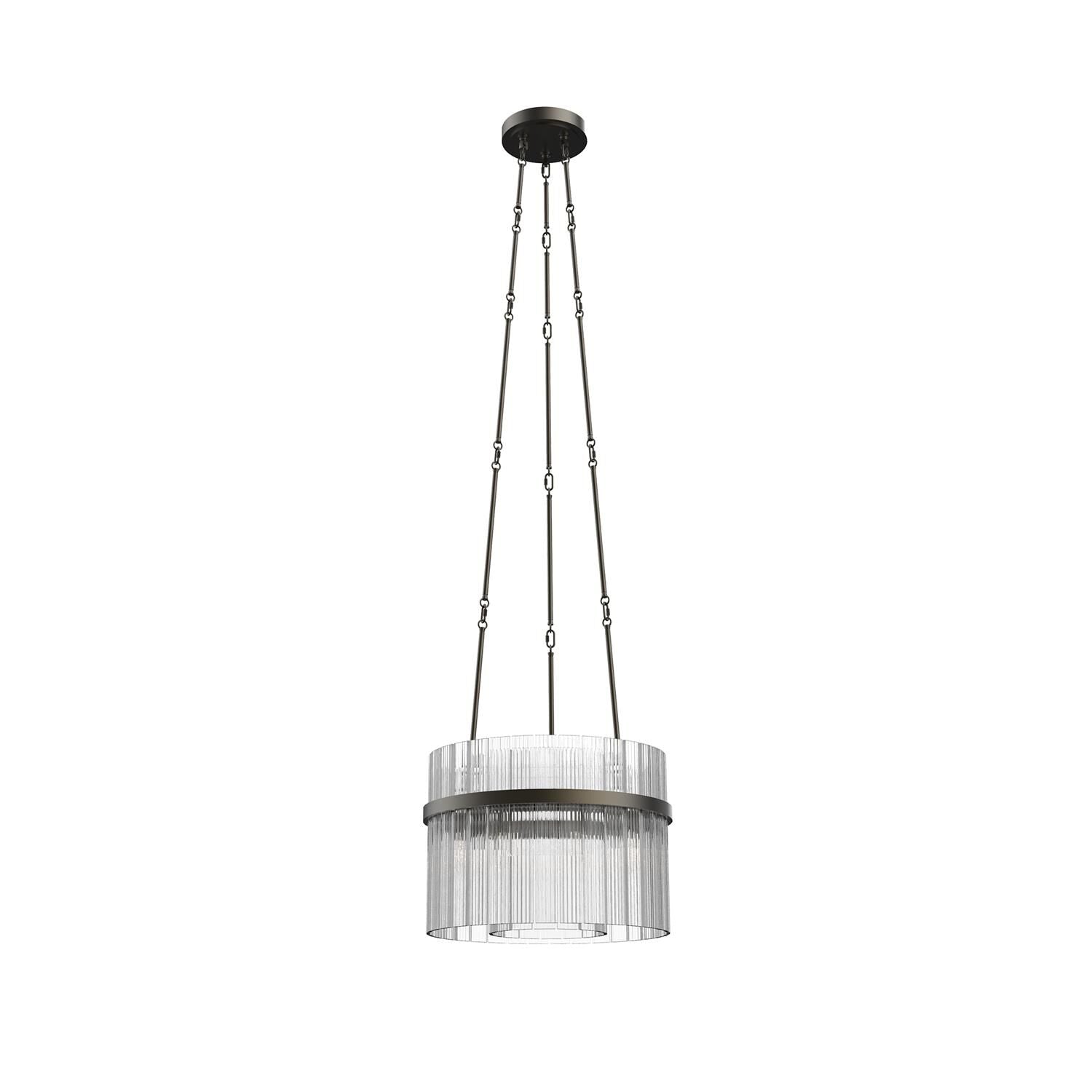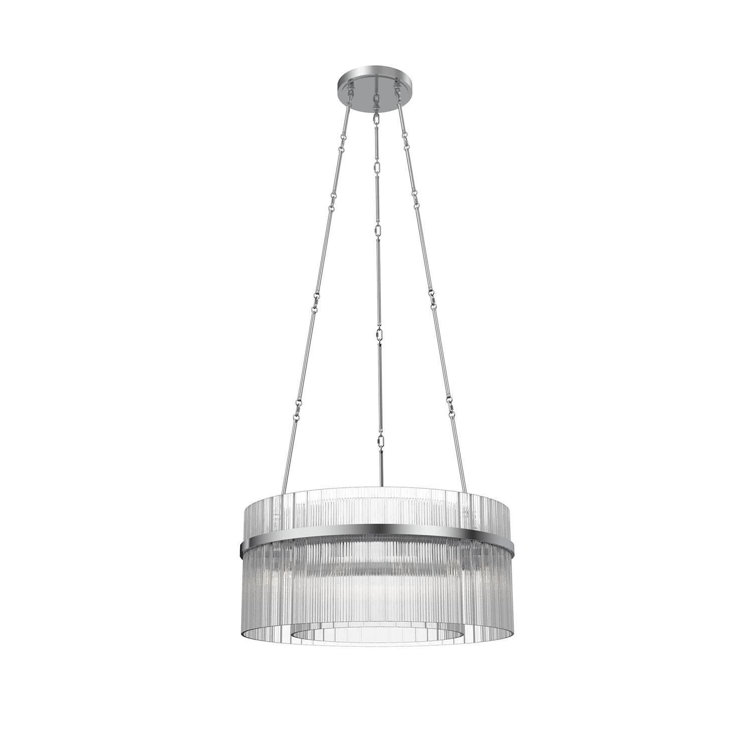 Allure 12-Light Fluted Glass Panel Aged Brass Drum Pendant Light