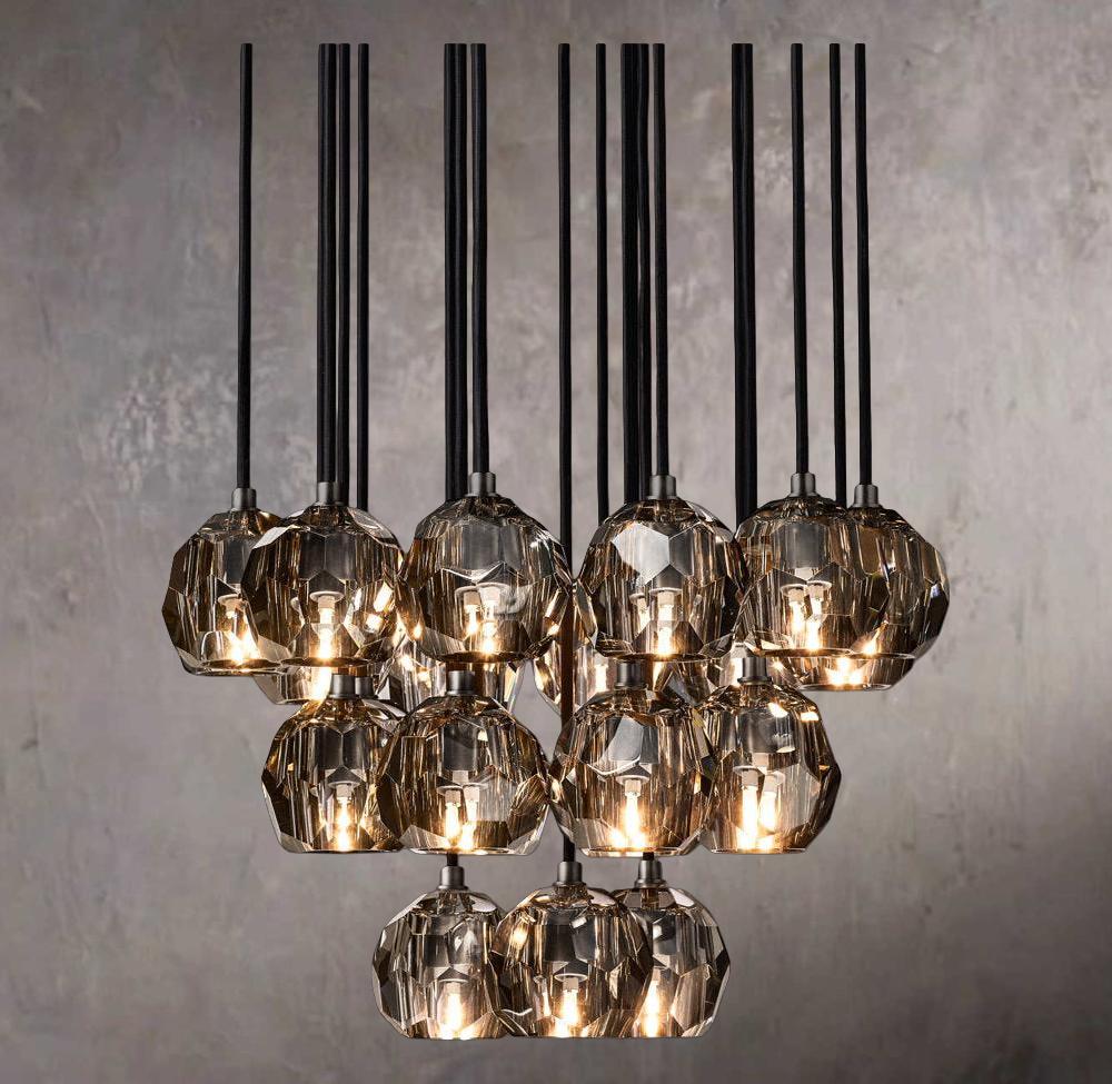 Smoky Lattice Glass Round Chandelier 48"