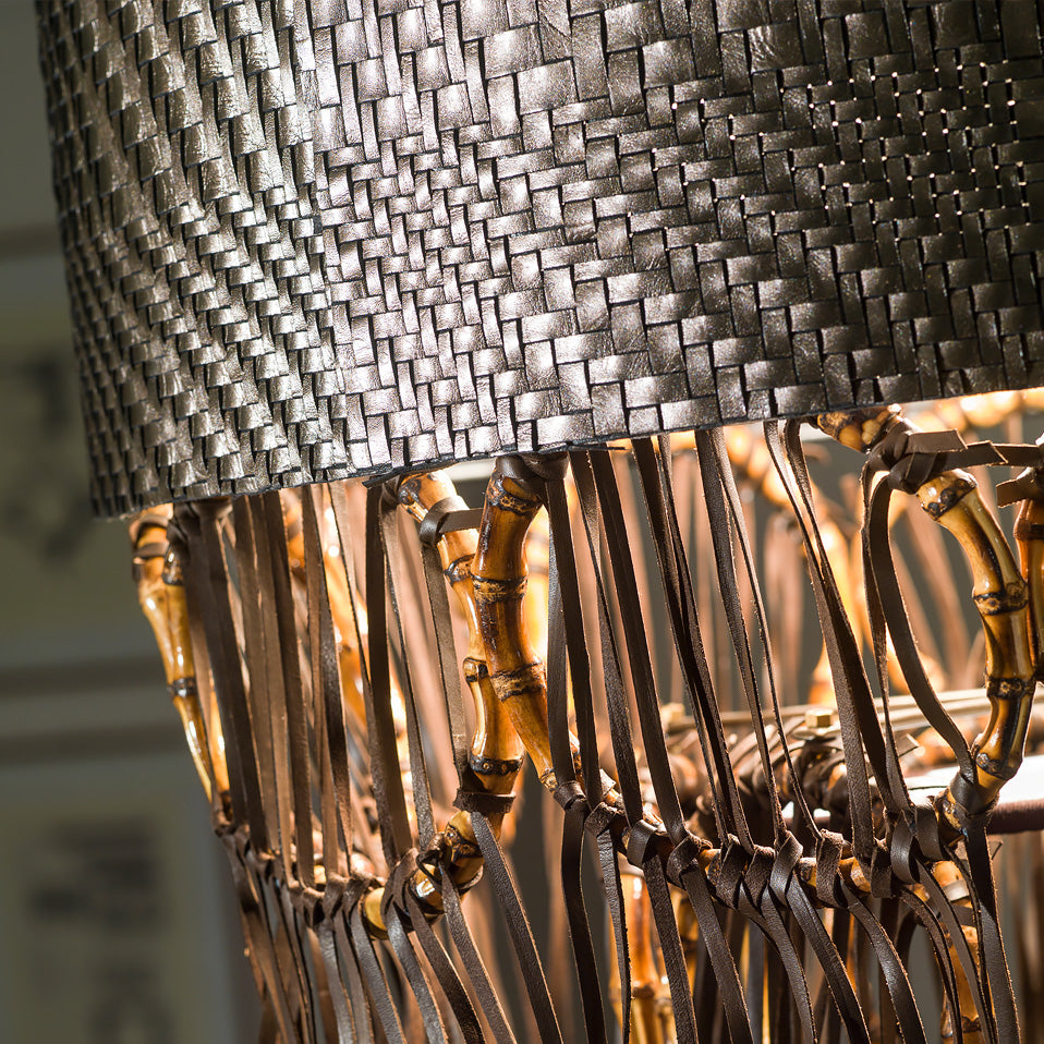 Boho Chic Woven Leather Bamboo Ceiling Light