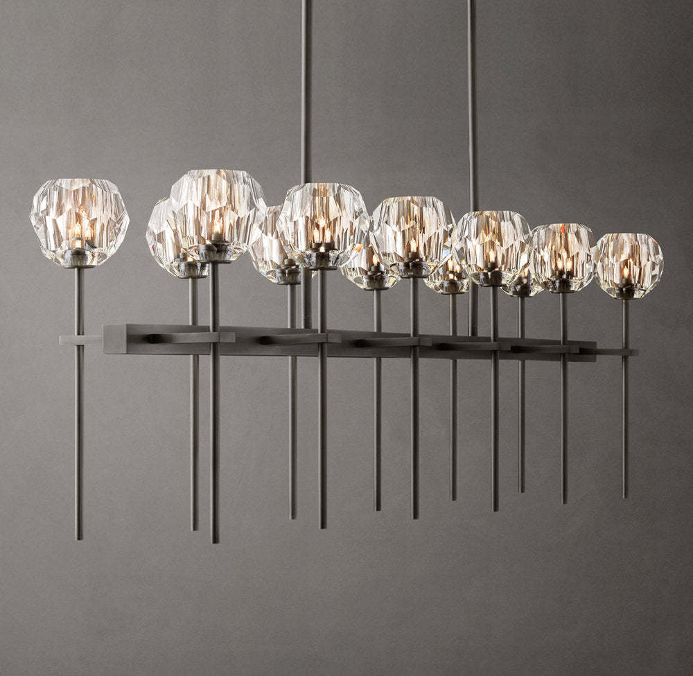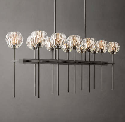 Crystal Orb Clear Glass Dual Linear Chandelier 60"