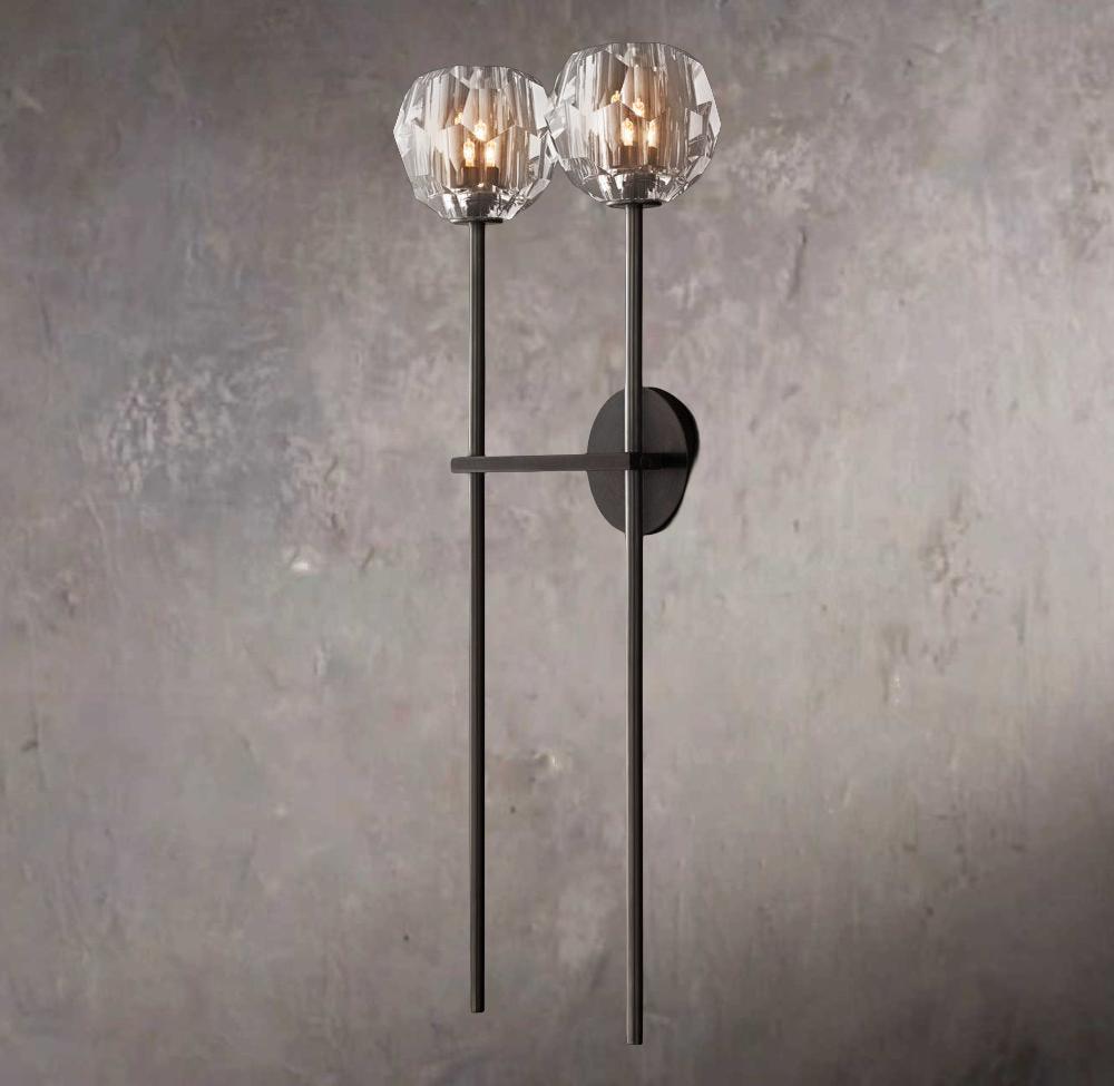 Crystal Sphere Clear Glass Grand Double Wall Sconce