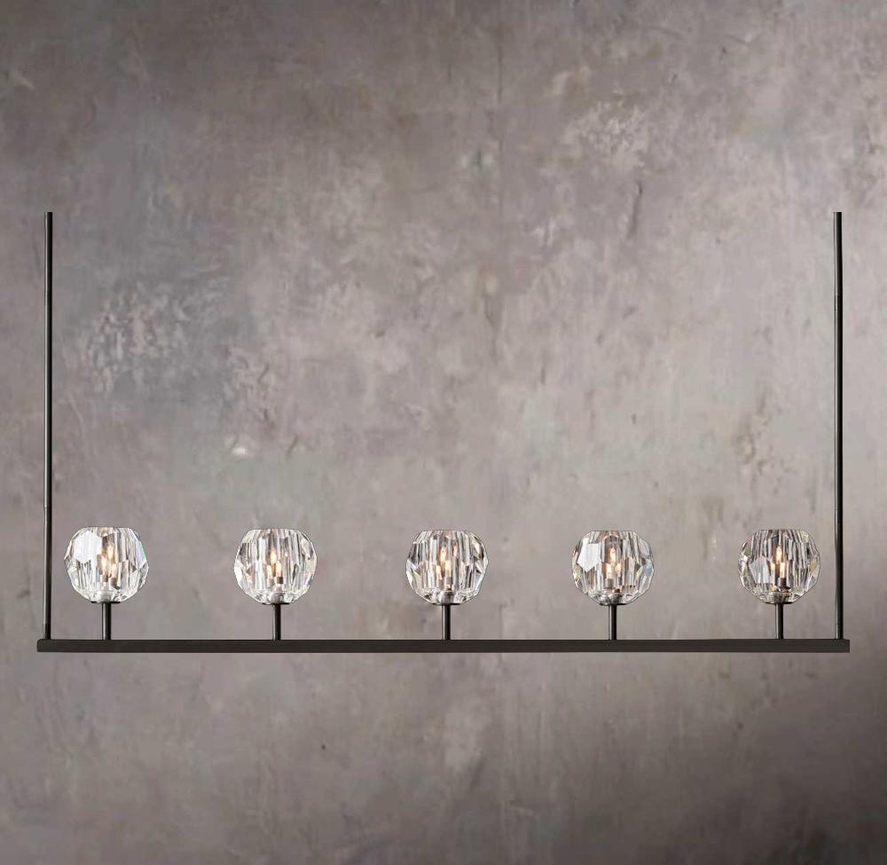 Crystal Ball Transparent Glass Linear Chandelier 48"
