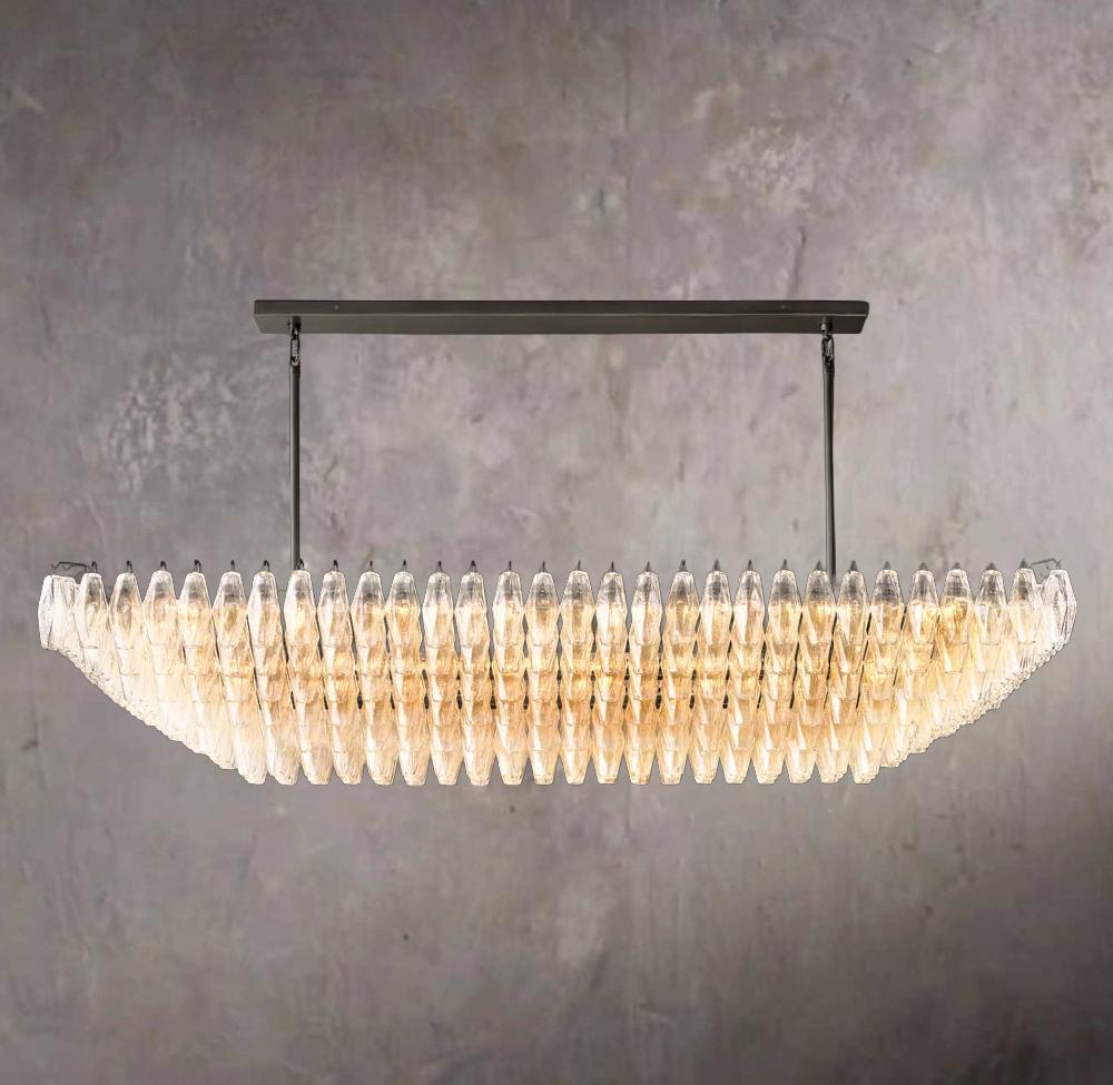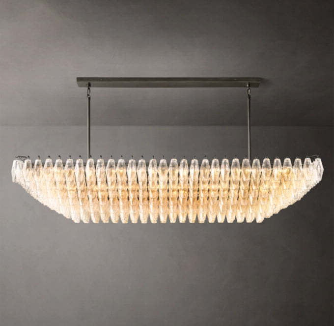 Chiara Transparent Glass Layered Rectangular Chandelier 74"