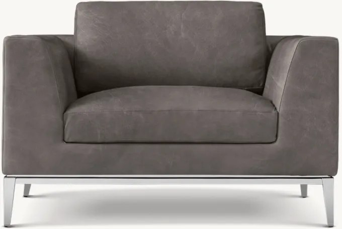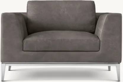 Italia Taper Arm Leather Chair - Metal Base