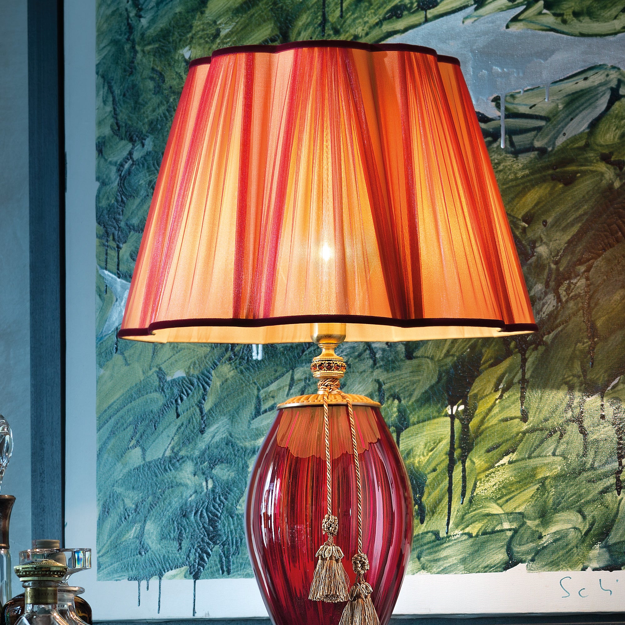 Large Ruby Blown Glass Table Lamp