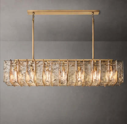 Gridded Mist Glass Linear Chandelier 67"
