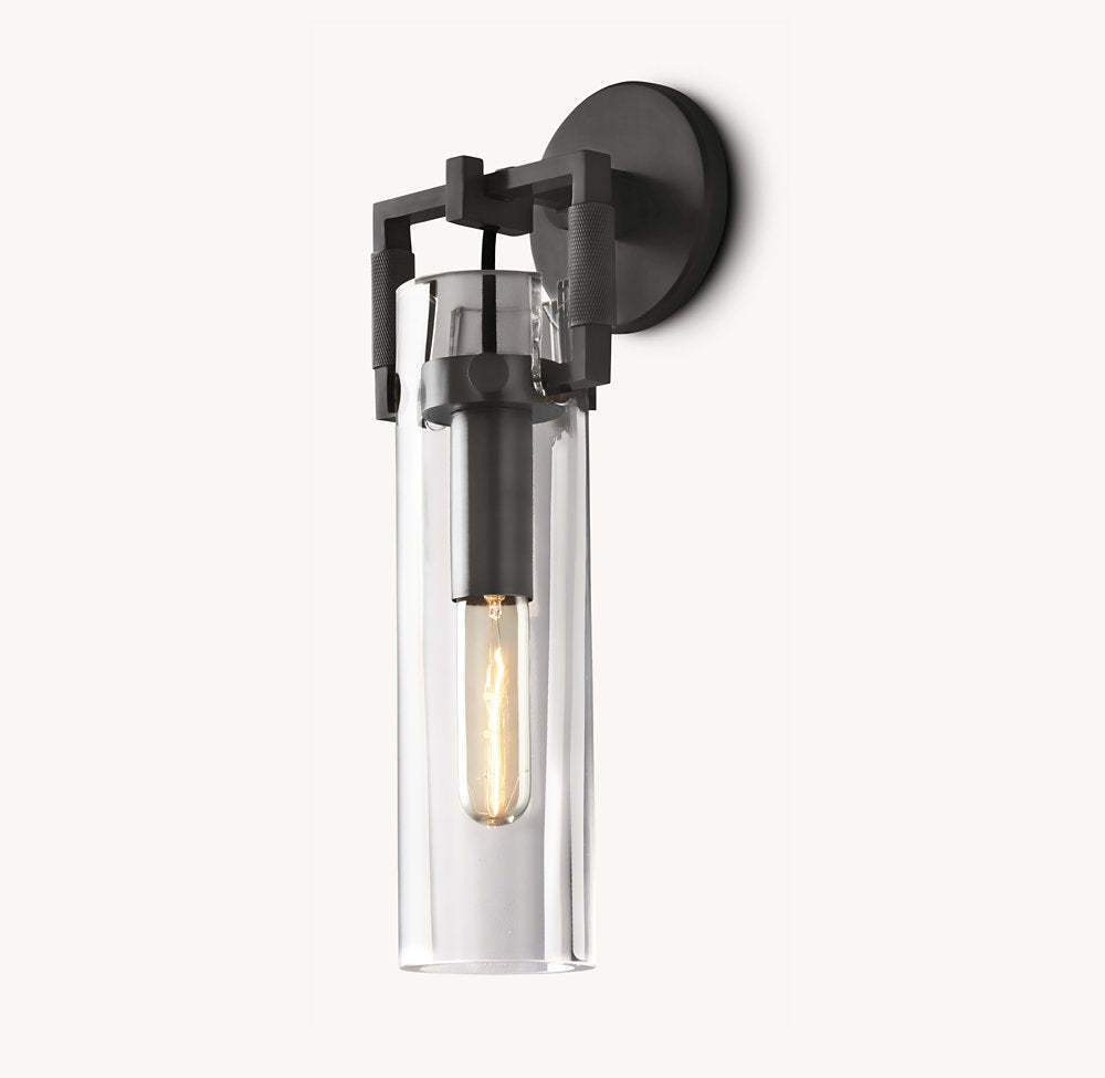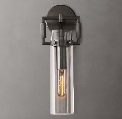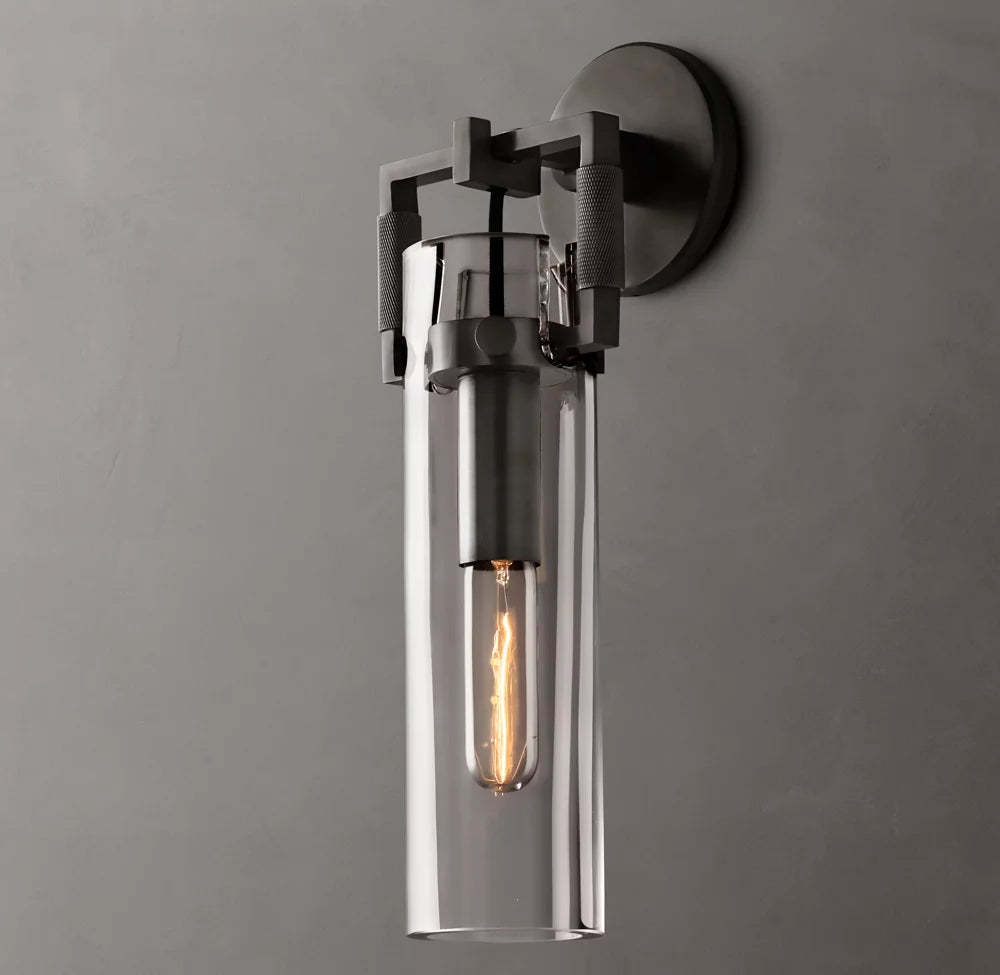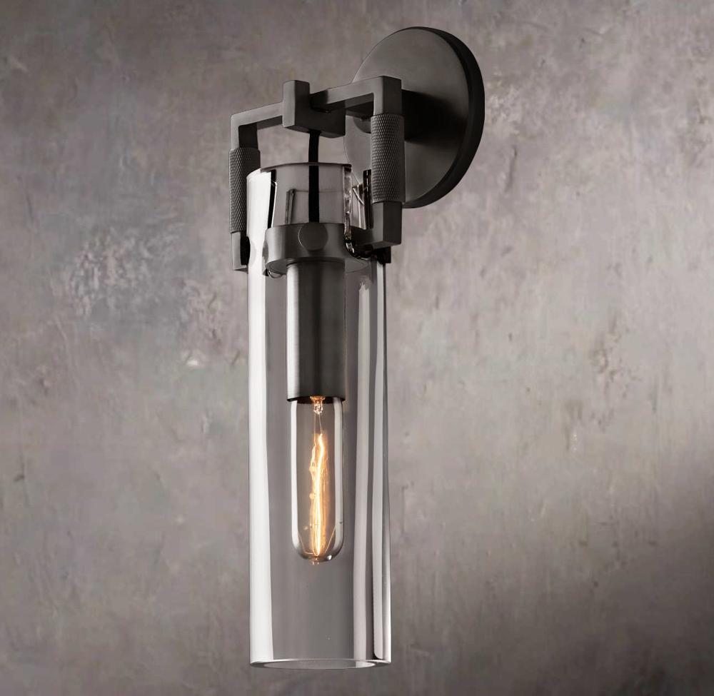 Industrial Glass Cylinder Wall Sconce 12"