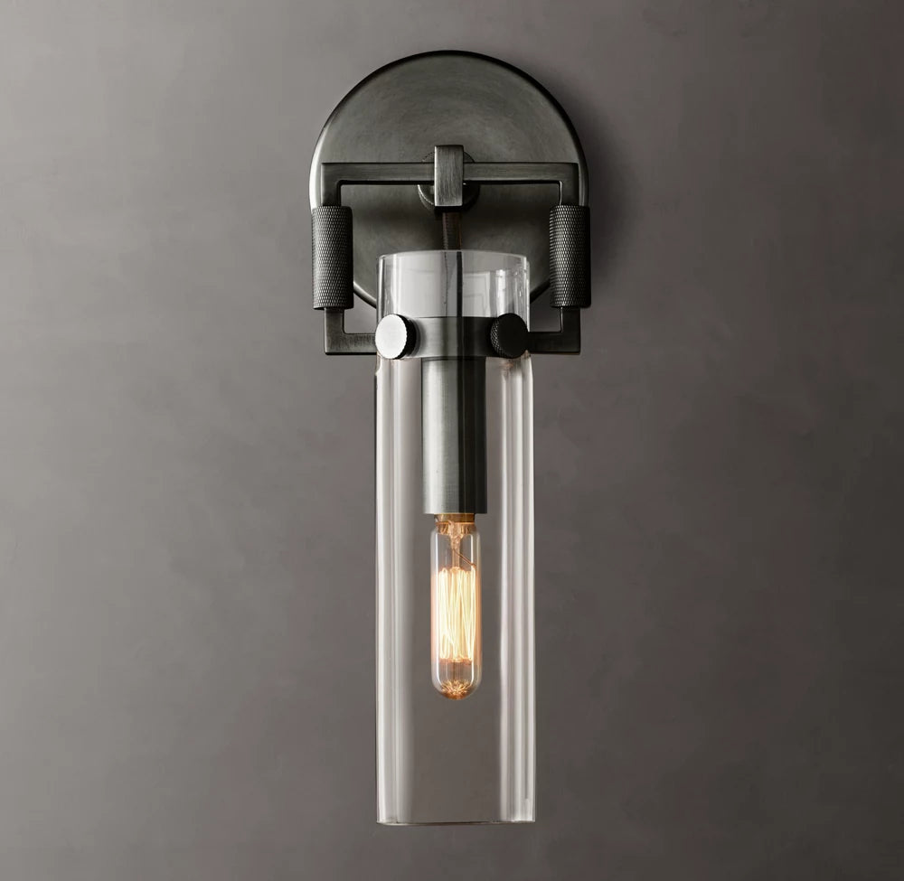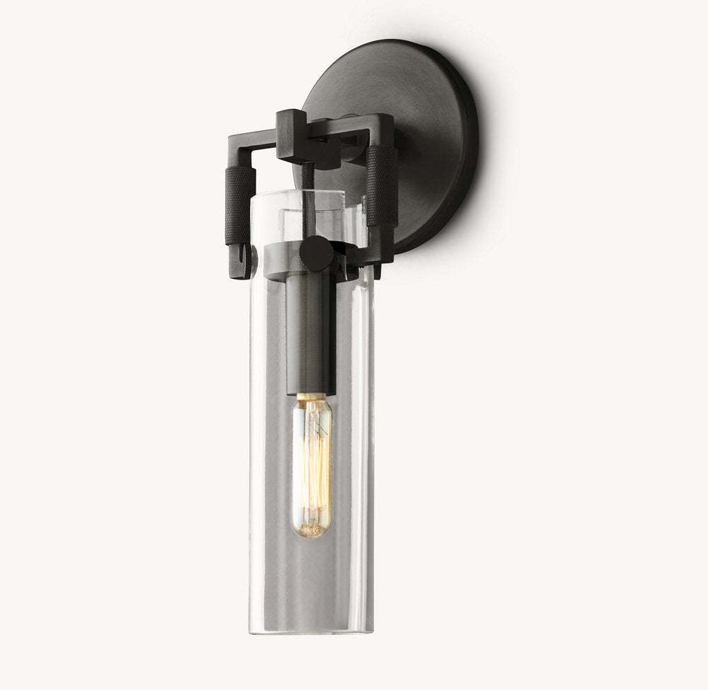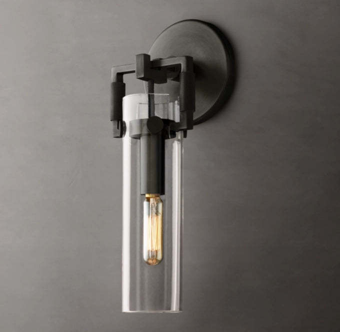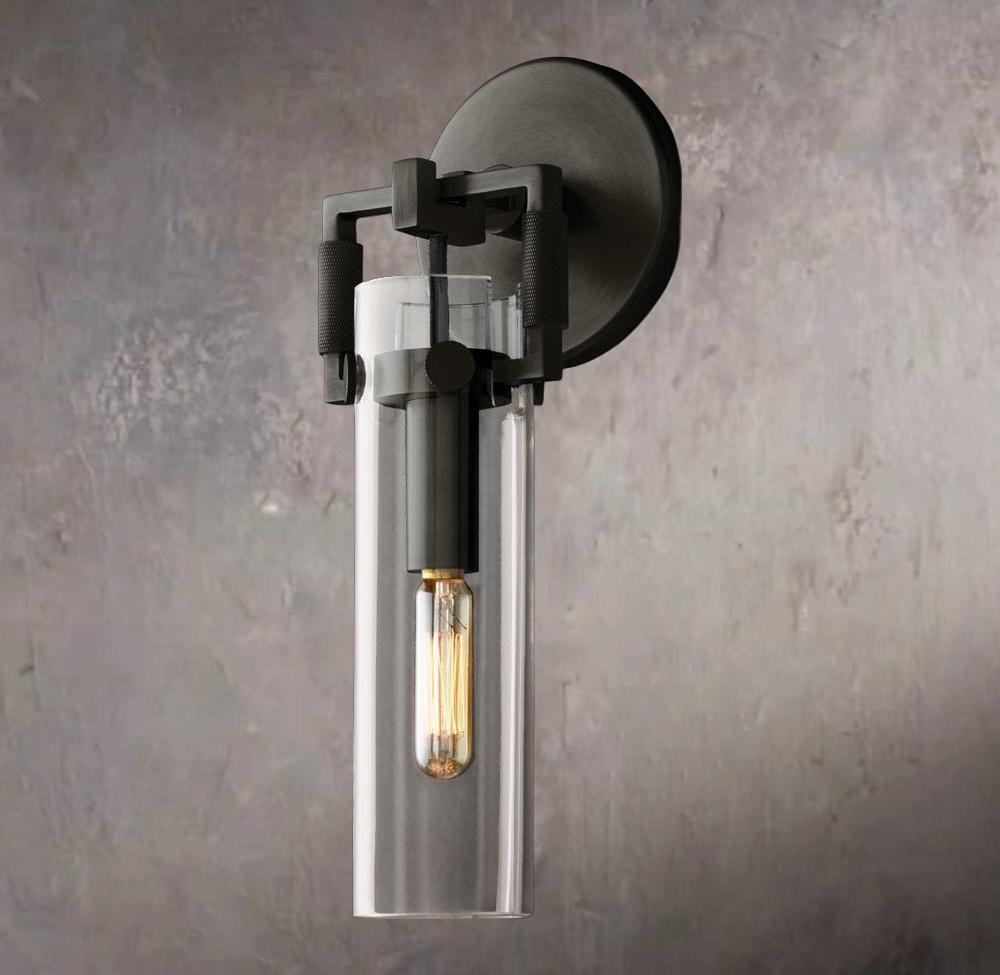 Industrial Glass Cylinder Wall Sconce 9"